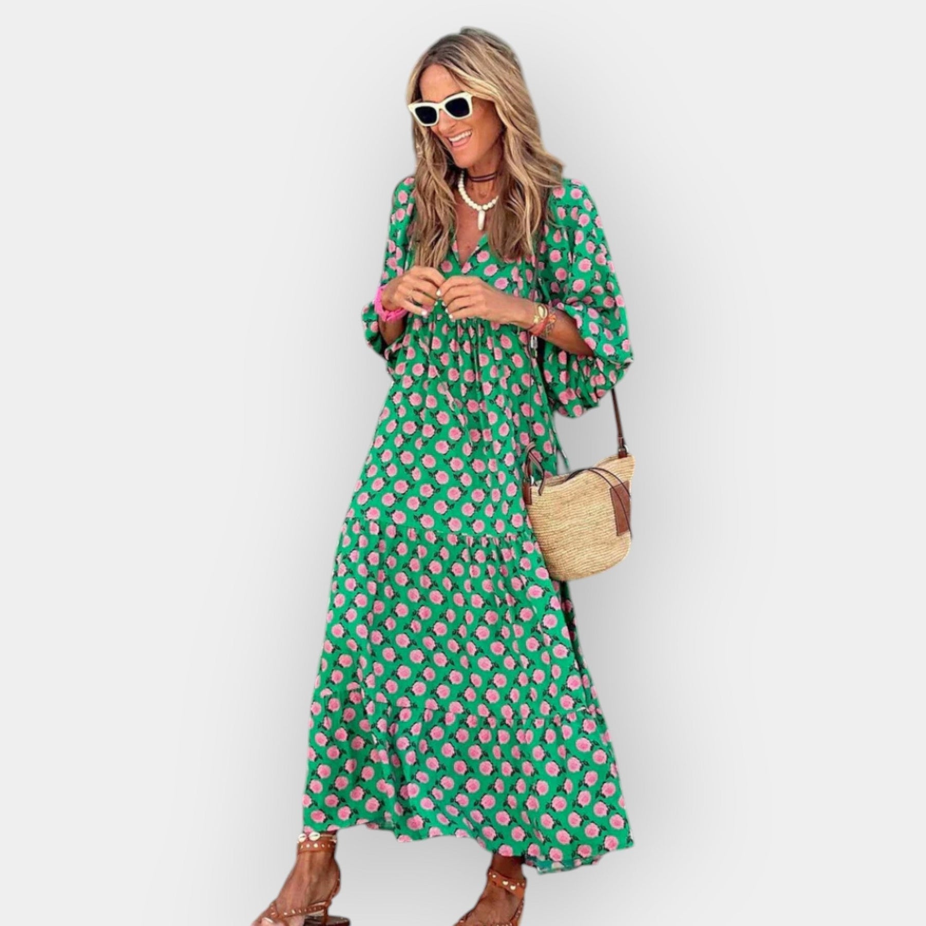 A dress that combines timeless elegance and romance, featuring a chic floral pattern and a comfortable fit. Ideal for warm days and stylish casual events.