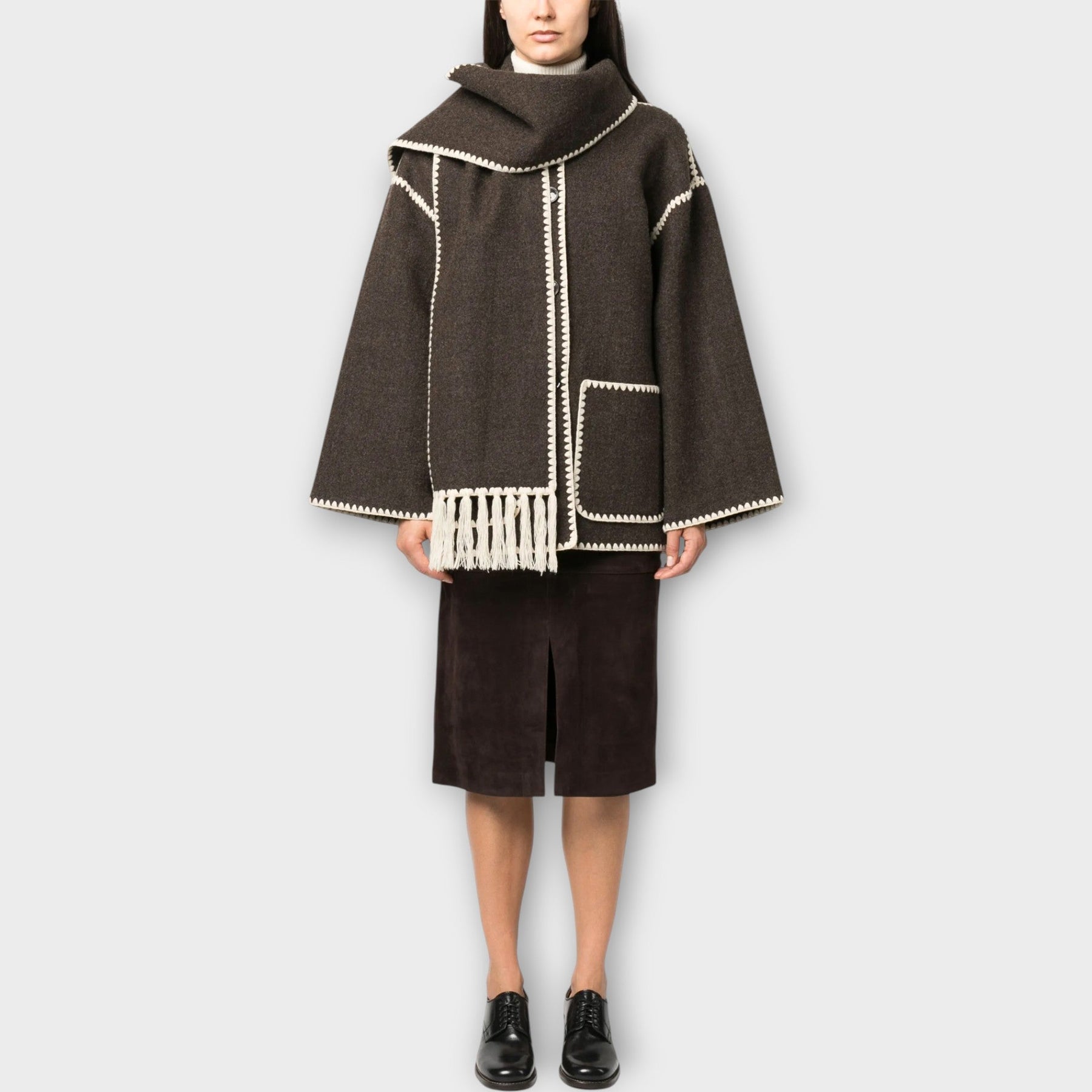 Wrap yourself in effortless style with the Alto Scarf Jacket. Designed with a soft, warm fabric and a vintage-inspired silhouette, this piece turns heads with its built-in scarf detail—an elegant twist on your everyday outerwear. Perfect for layering, it combines comfort and sophistication for a chic cold-weather look.