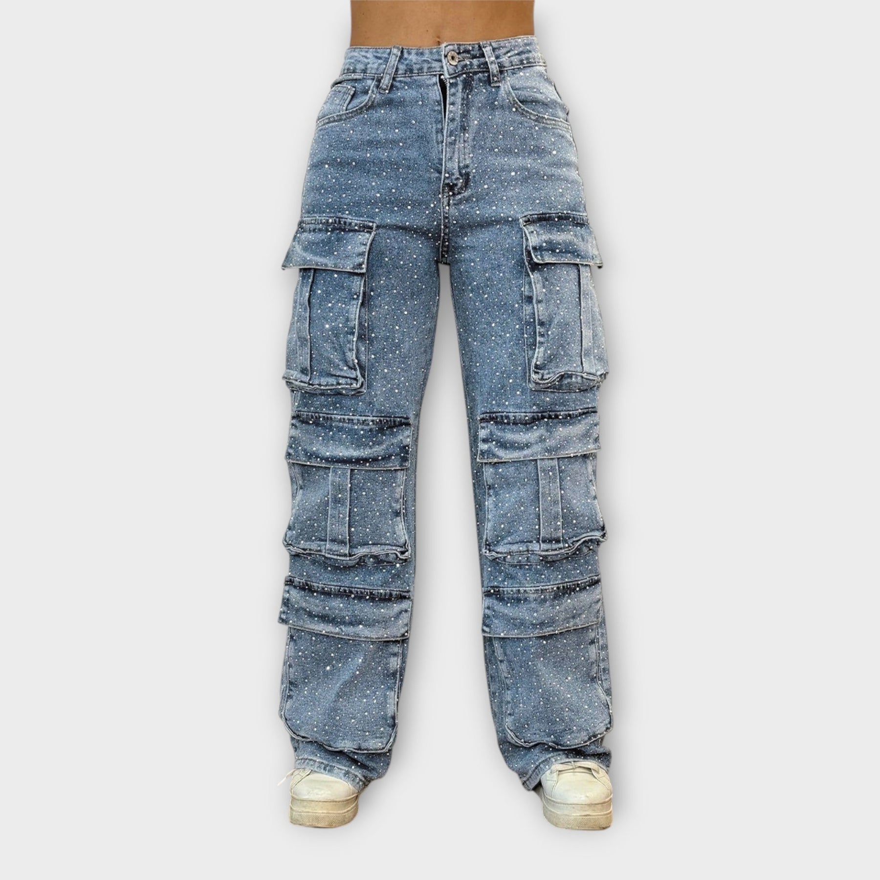 Turn heads with these Sparkle Ruffle Cargo Pants – where streetwear edge meets party-ready glamour.